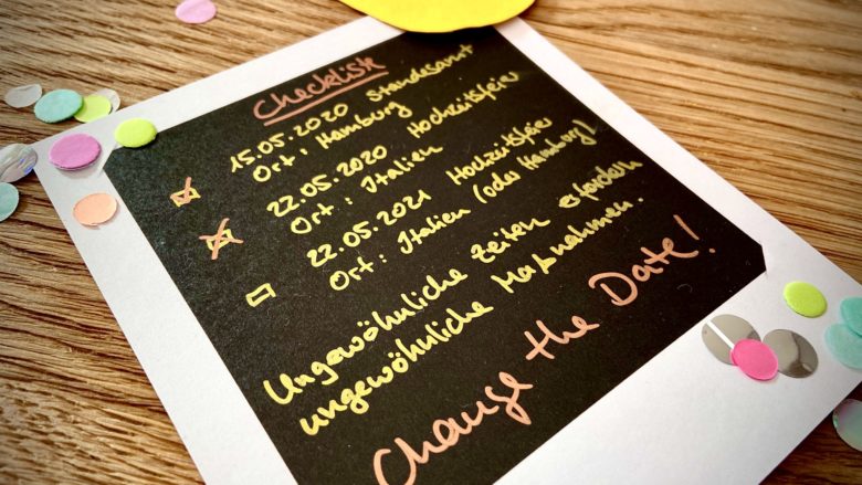 sicherlich fragt ihr euch schon, was in diesen verrückten Zeiten mit unserer Hochzeitsfeier sein wird. Da seid ihr nicht alleine, wir sind ständig am hin- und herüberlegen wie wir mit der Situation umgehen sollen.